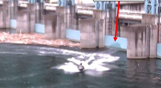 水上バイク1台が、ダム湖の進入禁止エリアへ進入したうえ、ダム施設や用水取水工施設に急接近し水しぶきをかけて遊ぶ危険行為を確認されました。